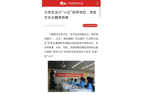 【中国教育在线】宁财院大学生设计“小众”研学项目,传统文化主题受热捧