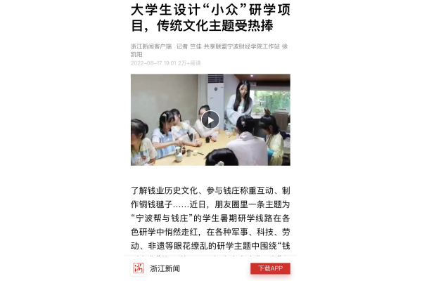 【浙江新闻客户端】宁财院大学生设计“小众”研学项目,传统文化主题受热捧