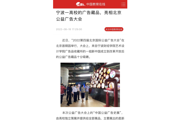 【中国教育在线】宁财院的广告藏品,亮相北京公益广告大会