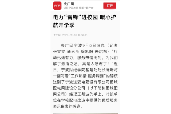 【央广网】宁财院:电力“雷锋”进校园 暖心护航开学季