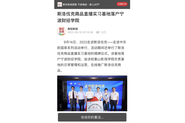 【宁波晚报·甬上客户端】斯洛伐克商品直播实习基地落户宁波财经学院