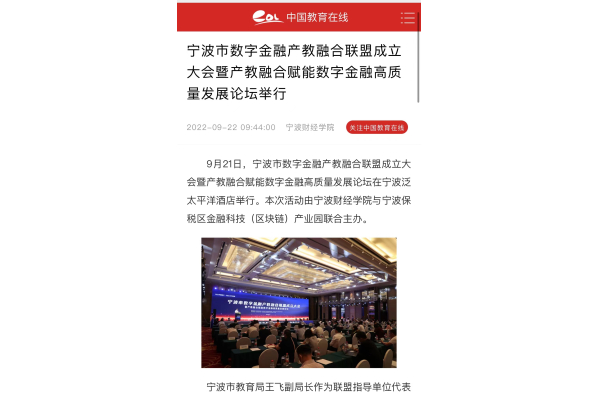 【中国教育在线】宁波财经学院发起宁波市数字金融产教融合联盟