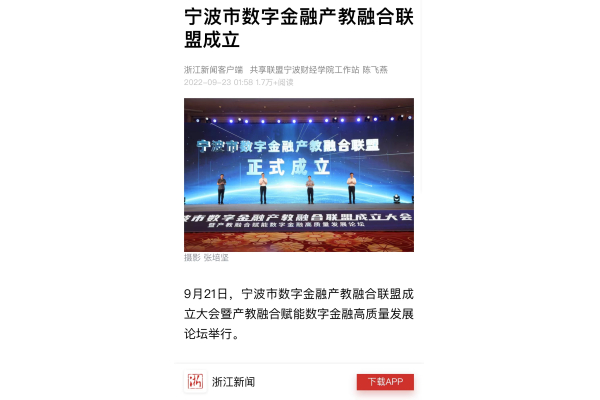 【浙江新闻客户端】宁波财经学院发起宁波市数字金融产教融合联盟
