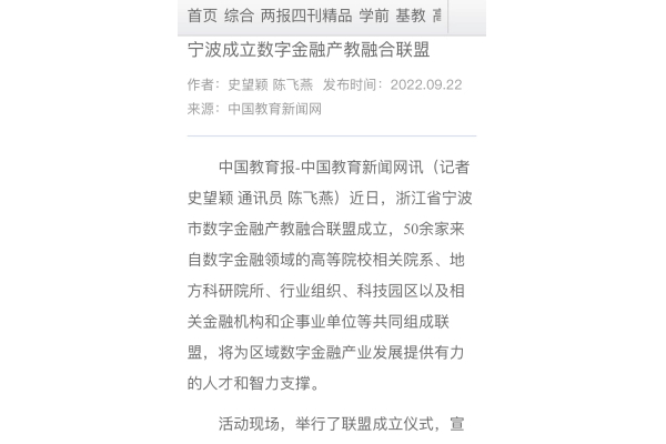 【中国教育新闻网】宁波财经学院发起宁波市数字金融产教融合联盟