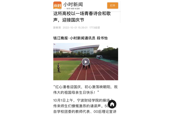 【钱江晚报·小时新闻客户端】宁财院以一场青春诗会和歌声,迎接国庆节