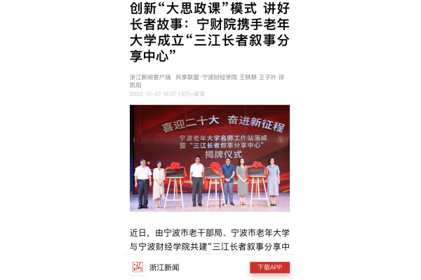 【浙江新闻客户端】创新“大思政课”模式 讲好长者故事:宁财院携手老年大学成立“三江长者叙事分享中心”