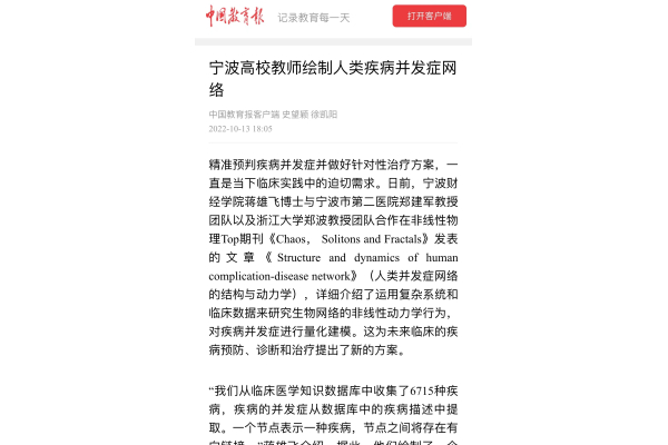 【中国教育报客户端】宁财院教师绘制人类疾病并发症网络
