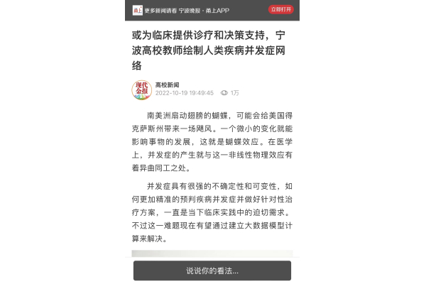 【宁波晚报·甬上客户端】或为临床提供诊疗和决策支持,宁财院教师绘制人类疾病并发症网络
