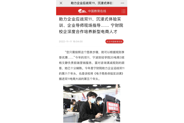 【中国教育在线】助力企业应战双11、沉浸式体验实训…… 宁财院校企深度合作培养新型电商人才