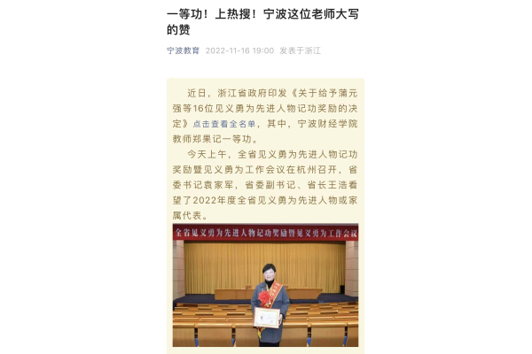 【宁波教育微信公众号】一等功!上热搜!宁财院这位老师大写的赞