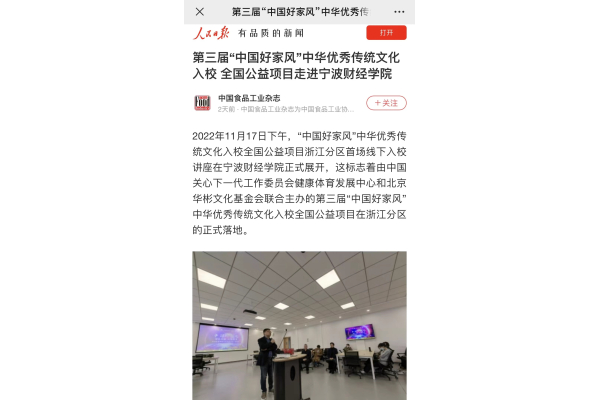 【人民日报客户端】第三届“中国好家风”中华优秀传统文化入校 全国公益项目走进宁波财经学院