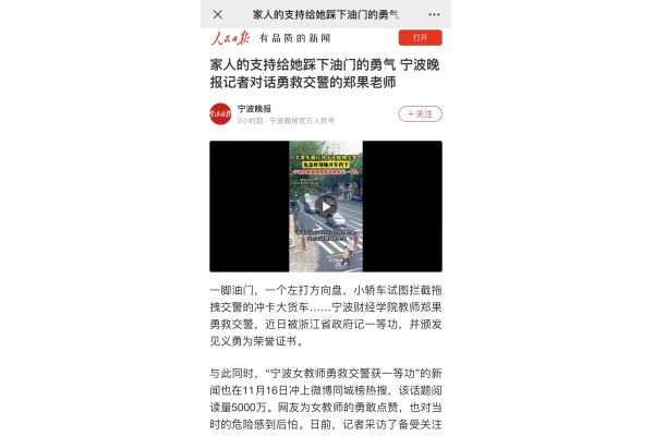 【人民日报客户端】家人的支持给她踩下油门的勇气 宁波晚报记者对话勇救交警的郑果老师