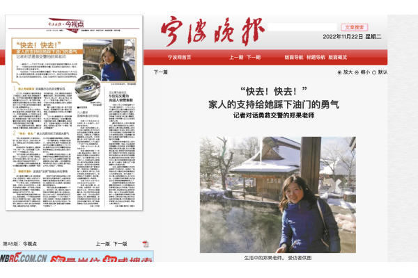 【宁波晚报】“快去!快去!” 家人的支持给她踩下油门的勇气 记者对话勇救交警的郑果老师