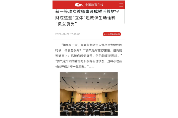【中国教育在线】获一等功女教师事迹成鲜活教材 宁财院这堂“立体”思政课生动诠释“见义勇为”