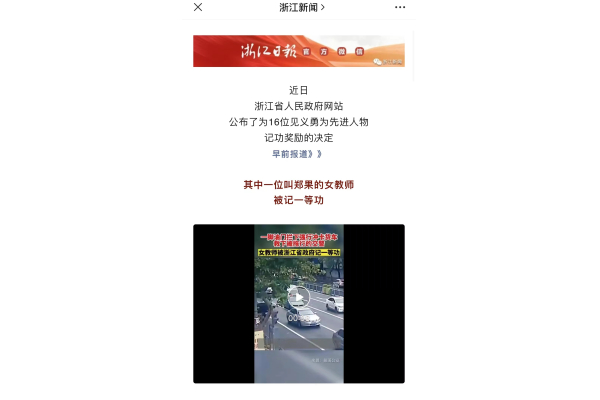 【浙江新闻微信公众号】紧急关头一脚刹车!浙江高校女教师被记一等功