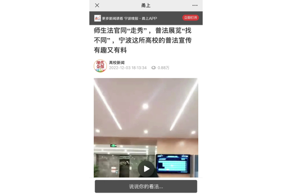 【宁波晚报·甬上客户端】师生法官同“走秀” ,普法展览“找不同” ,宁财院的普法宣传有趣又有料