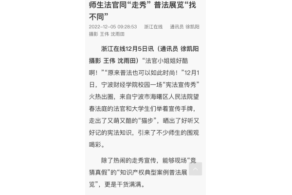 【浙江在线】宁财院师生法官同“走秀” 普法展览“找不同”