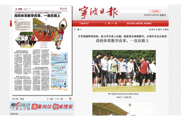 【宁波日报】宁波财经学院探索体育俱乐部制教学模式,让学生走出寝室