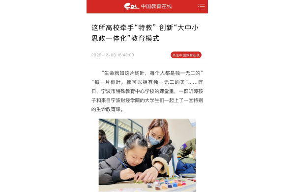 【中国教育在线】宁财院牵手“特教” 创新“大中小思政一体化”教育模式