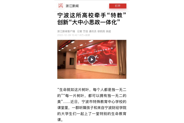 【浙江新闻客户端】宁财院牵手“特教” 创新“大中小思政一体化”