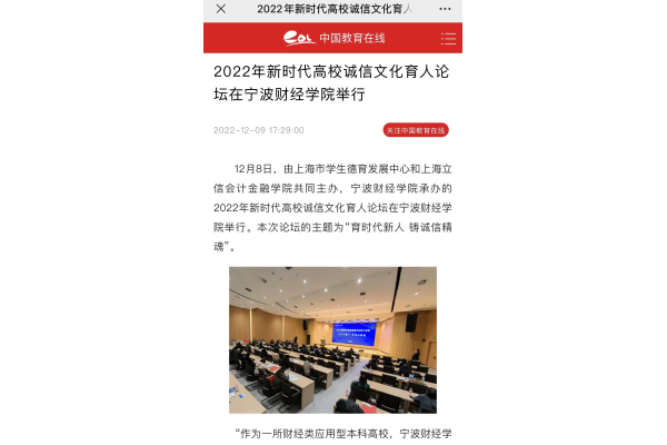 【中国教育在线】2022年新时代高校诚信文化育人论坛在宁波财经学院举行