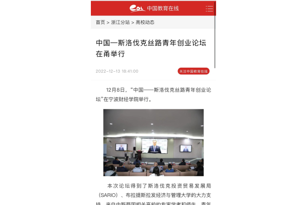 【中国教育在线】中国—斯洛伐克丝路青年创业论坛在宁财院举行