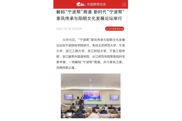 【中国教育在线】解码“宁波帮”商道 新时代“宁波帮”家风传承与阳明文化发展论坛在宁财院举行
