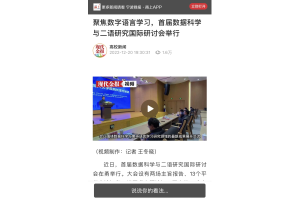 【宁波晚报·甬上客户端】聚焦数字语言学习,首届数据科学与二语研究国际研讨会在宁财院举行