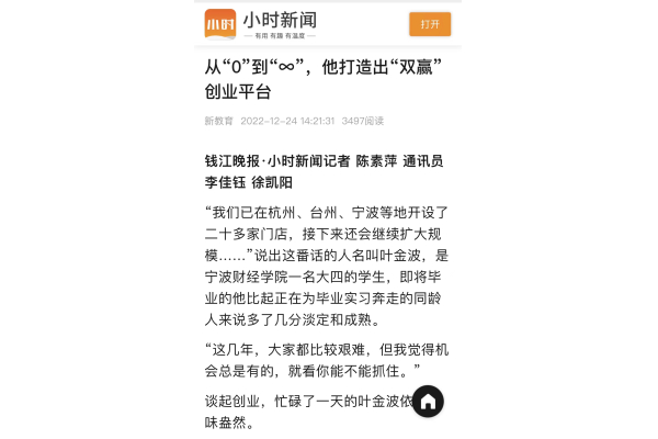 【钱江晚报·小时新闻】从“0”到“∞”,宁财院叶金波打造出“双赢”创业平台