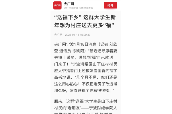 【央广网】宁财院:这群大学生“送福下乡”新的一年想为村庄送去更多“福”