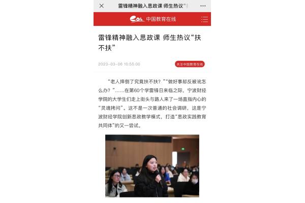 【中国教育在线】宁波财经学院:雷锋精神融入思政课,师生热议“扶不扶”