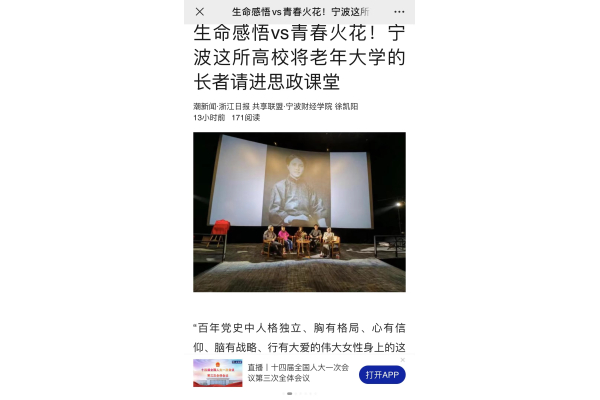【潮新闻·浙江日报】生命感悟vs青春火花!宁财院将老年大学的长者请进思政课堂