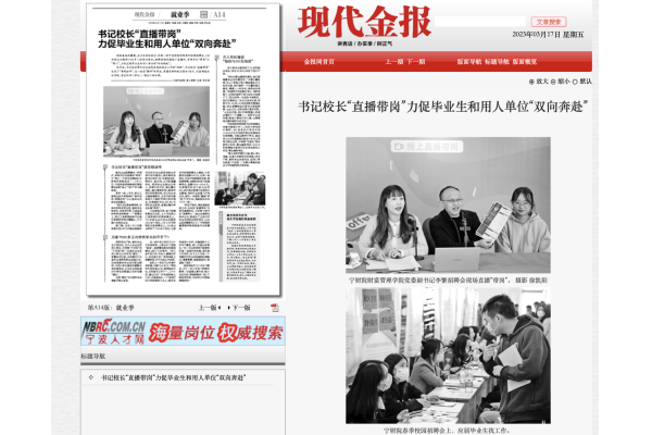 【现代金报】宁财院书记校长“直播带岗”力促毕业生和用人单位“双向奔赴”