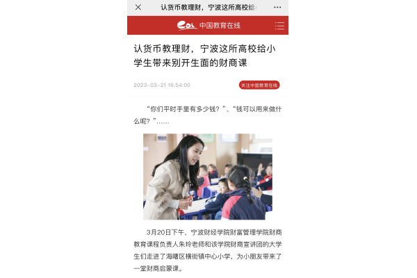 【中国教育在线】认货币教理财,宁财院给小学生带来别开生面的财商课