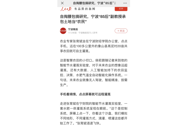 【人民日报客户端】自掏腰包搞研究,宁财院“85后”副教授承包土地当“农民”
