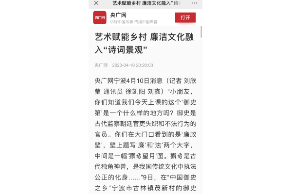 【央广网】宁波财经学院:艺术赋能乡村 廉洁文化融入“诗词景观”