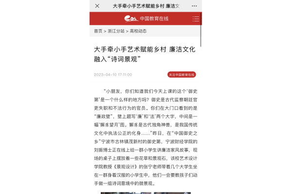 【中国教育在线】宁财院:大手牵小手艺术赋能乡村 廉洁文化融入“诗词景观”