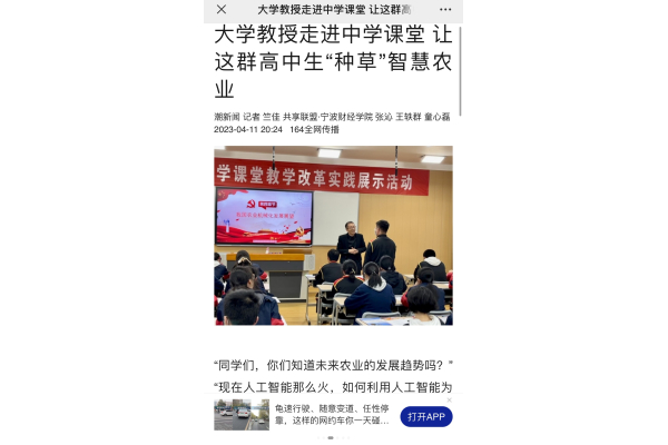 【潮新闻】宁财院教授走进中学课堂 让这群高中生“种草”智慧农业