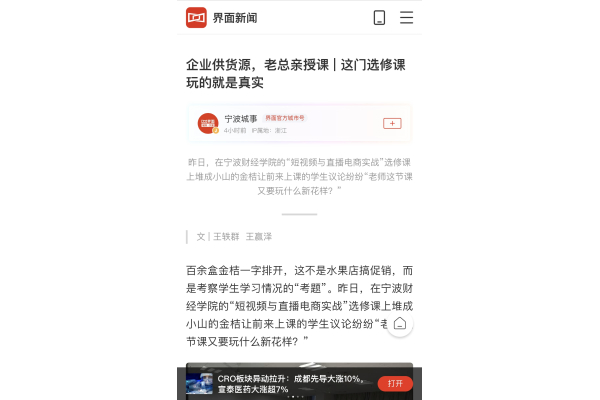 【界面新闻】企业供货源,老总亲授课 | 宁财院这门选修课玩的就是真实