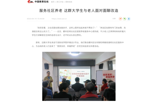【中国教育在线】服务社区养老 宁财院大学生与老人面对面聊改造