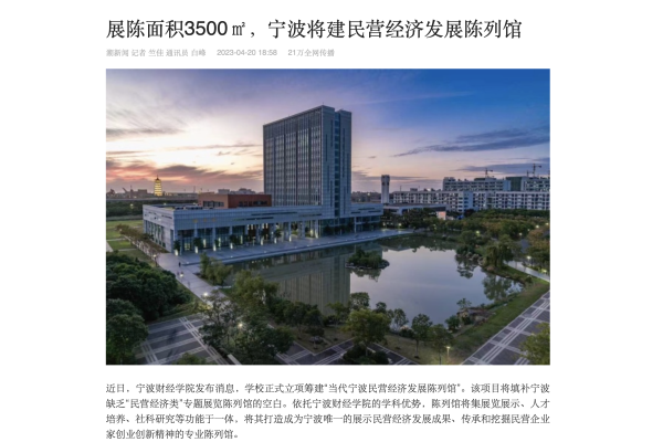 【潮新闻】展陈面积3500㎡,宁财院将建民营经济发展陈列馆
