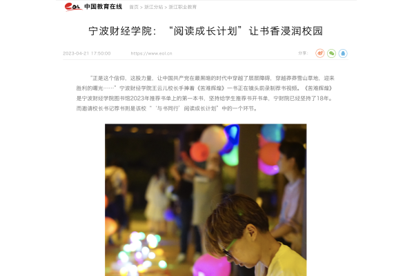 【中国教育在线】宁波财经学院:“阅读成长计划”让书香浸润校园