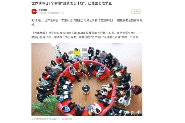 【人民日报客户端】世界读书日 | 宁财院“阅读成长计划”,已覆盖七成学生