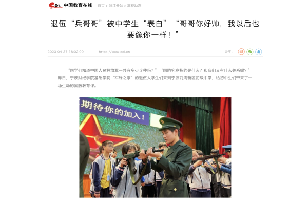 【中国教育在线】退伍“兵哥哥”被中学生“表白”“哥哥你好帅,我以后也要像你一样!”