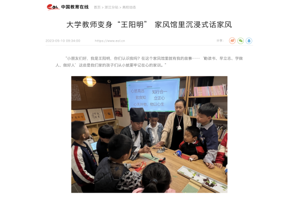 【中国教育在线】宁财院教师变身“王阳明” 家风馆里沉浸式话家风