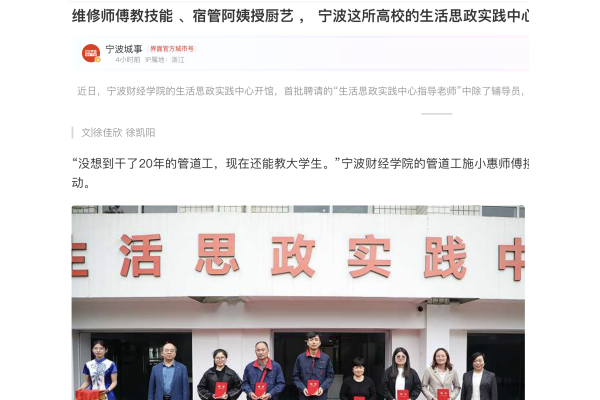 【界面新闻】维修师傅教技能 、宿管阿姨授厨艺 , 宁波这所高校的生活思政实践中心“很实在”