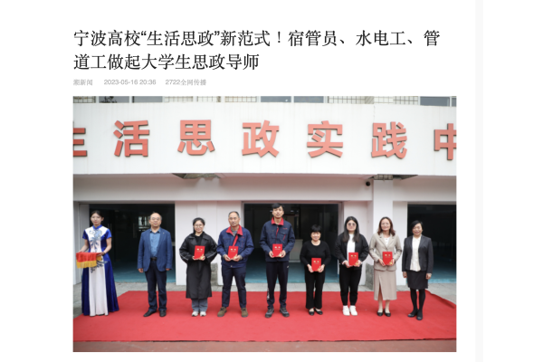 【潮新闻】宁波高校“生活思政”新范式!宿管员、水电工、管道工做起大学生思政导师