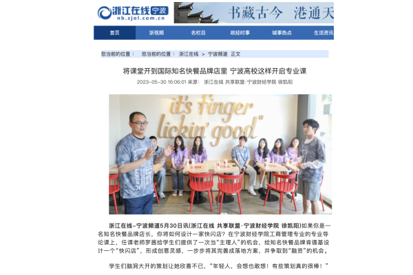 【浙江在线】将课堂开到国际知名快餐品牌店里 宁波高校这样开启专业课