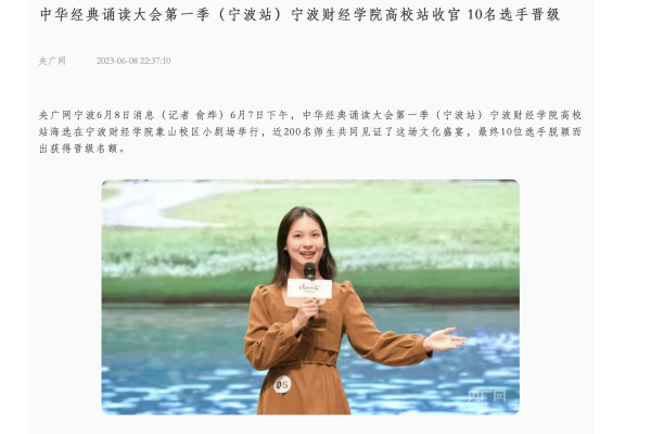 【央广网】中华经典诵读大会第一季(宁波站)宁波财经学院高校站收官 10名选手晋级