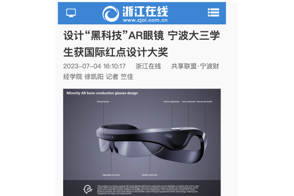 【浙江在线】设计“黑科技”AR眼镜 宁波大三学生获国际红点设计大奖